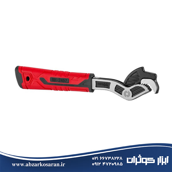 آچار چندکاره ۸ اینچ رونیکس Ronix مدل RH-2457 با بهره‌گیری از دسته ارگونومیک ضد لغزش ساخته شده از TPR، تجربه کاری راحت‌تر و بهره‌وری بیشتر را برای کاربران به همراه دارد. این آچار از فولاد 40Cr تولید شده و دارای دندانه‌هایی در سه سمت عاج‌دار برای افزایش مقاومت و دوام می‌باشد. دهانه این ابزار با ابعاد ۲۰۰ میلی‌متر (۸ اینچ) قابلیت تنظیم در بازه ۹ تا ۲۵ میلی‌متر را داشته و به طور خاص طراحی شده تا نیازهای مختلف کاربران را برآورده کند.