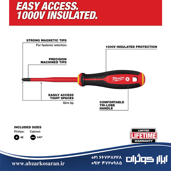 دو پیچگوشتی عایقدار با نوک باریک (۱/۴″ و PH2)