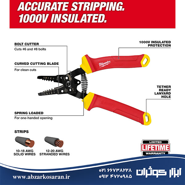 استریپر سیم به گونهای دقیق طراحی شده که عایق سیمهای جامد ۱۰-۱۸ AWG و سیمهای رشتهای ۱۲-۲۰ AWG را از بین میبرد.