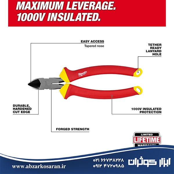 تمامی این ابزارها دارای عایق محافظ تا ۱۰۰۰ ولت هستند تا از بروز خطر برقگرفتگی هنگام کار جلوگیری کنند. همچنین این مجموعه تحت آزمایشهای UL Classified قرار گرفته و از استانداردهای IEC 60900 و ASTM F1505 برای ابزارهای عایق پیروی میکند. از دیگر ویژگیهای برجسته مجموعه ۵ عددی ابزار دستی عایق ۱۰۰۰ ولت میلواکی Milwaukee مدل ۴۸۲۲۲۲۱۵ میتوان به لبههای سختکاری شده و بادوام جهت ایجاد برشهای دقیق، قدرت اهرم بالا برای انجام کارهای سنگین، طراحی ارگونومیک دستهها برای سهولت استفاده و پوشش کامل عایق در قسمت نوک پیچگوشتیها اشاره کرد که این ابزارها را حتی در فضاهای محدود قابل استفاده میسازد. مجموعه ۵ عددی ابزار دستی عایق ۱۰۰۰ ولت میلواکی Milwaukee مدل ۴۸۲۲۲۲۱۵ گزینهای عالی برای برقکاران، تکنسینهای صنعتی و کسانی است که به انجام کارهای حساس و ایمن در محیطهای الکتریکی نیاز دارند.