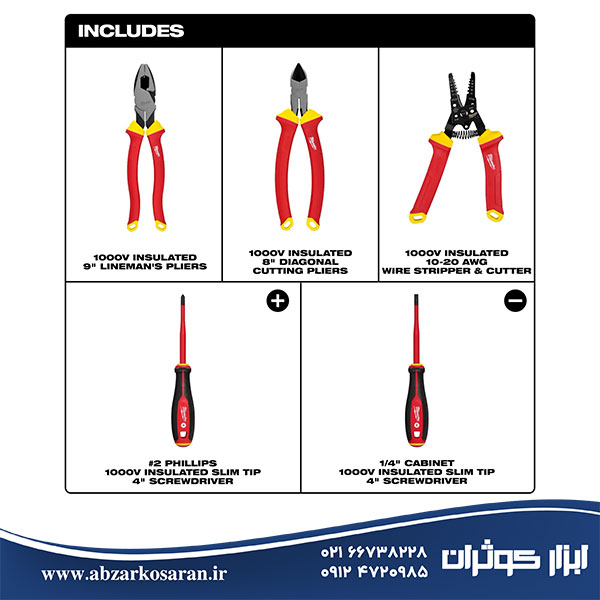 مجموعه 5 عددی ابزار دستی عایق 1000 ولت میلواکی Milwaukee مدل 48222215