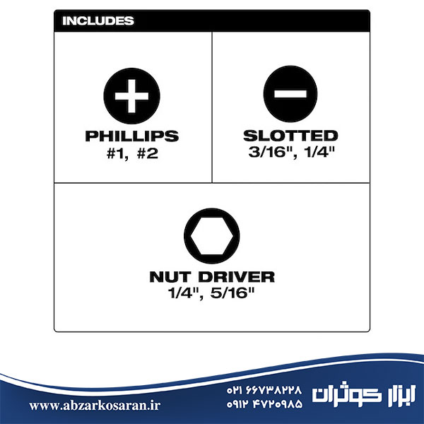 بیتهای موجود شامل: PH1، PH2، SL3/16″، SL1/4″